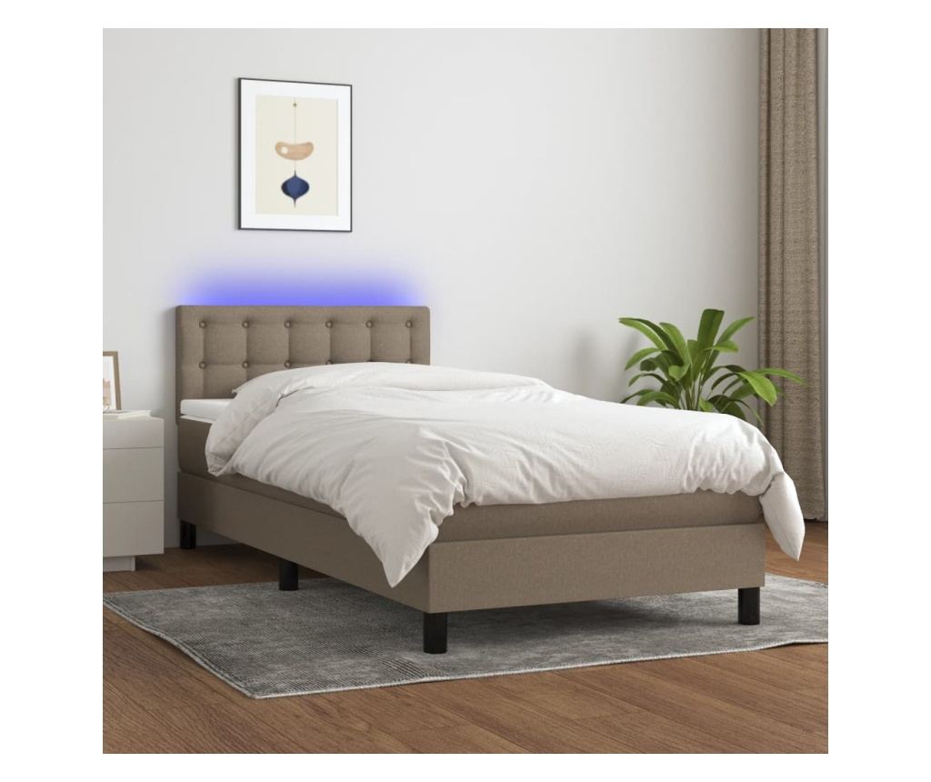 Легло с пружини, матрак и LED, тъмносиво, 100x200 см, текстил
