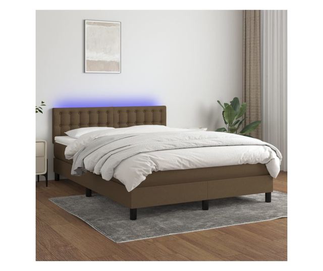 Легло с пружини, матрак и LED, тъмнокафяво, 140x190 см, текстил