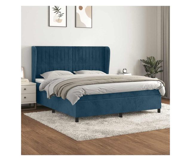 Боксспринг легло с матрак, тъмносиньо, 160x200 см, кадифе