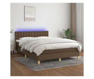 Пружинно легло с матрак и LED, тъмнокафяво, 140x190 см, текстил