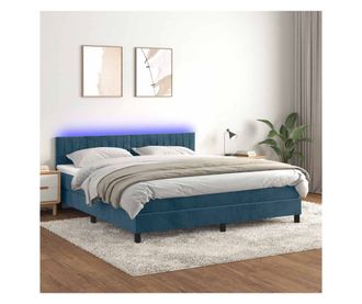 Рамка за легло с пружинен матрак и LED, тъмносин, 180x200 см, кадифе