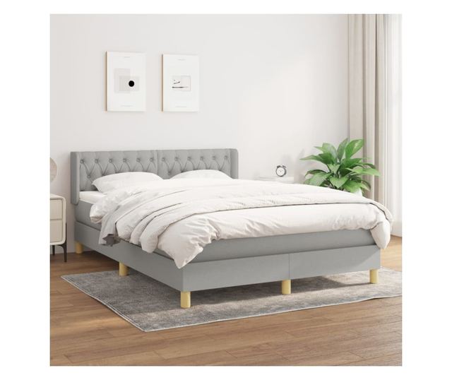 Континентално легло, светло сиво, 140x200 см, текстилен материал