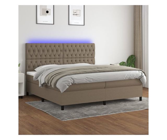 Легло с пружини, матрак и LED, таупе сиво, 200x200 см, текстил
