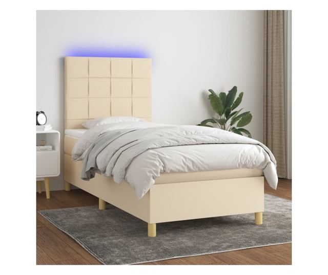 Пружинно легло с матрак и LED, кремаво, 80x200 см, текстил