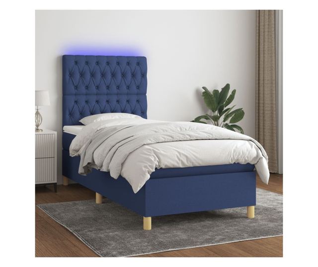 Пружинно легло с матрак и LED, синьо, 120x200 см, текстил