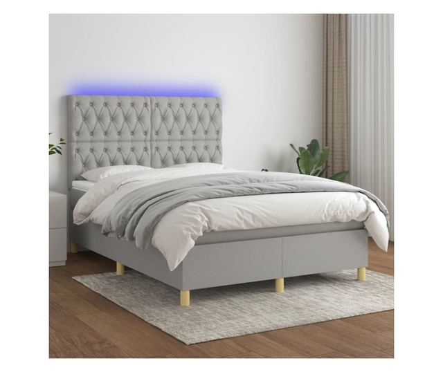 Легло с пружини, матрак и LED, светло сиво, 140x190 см, текстил