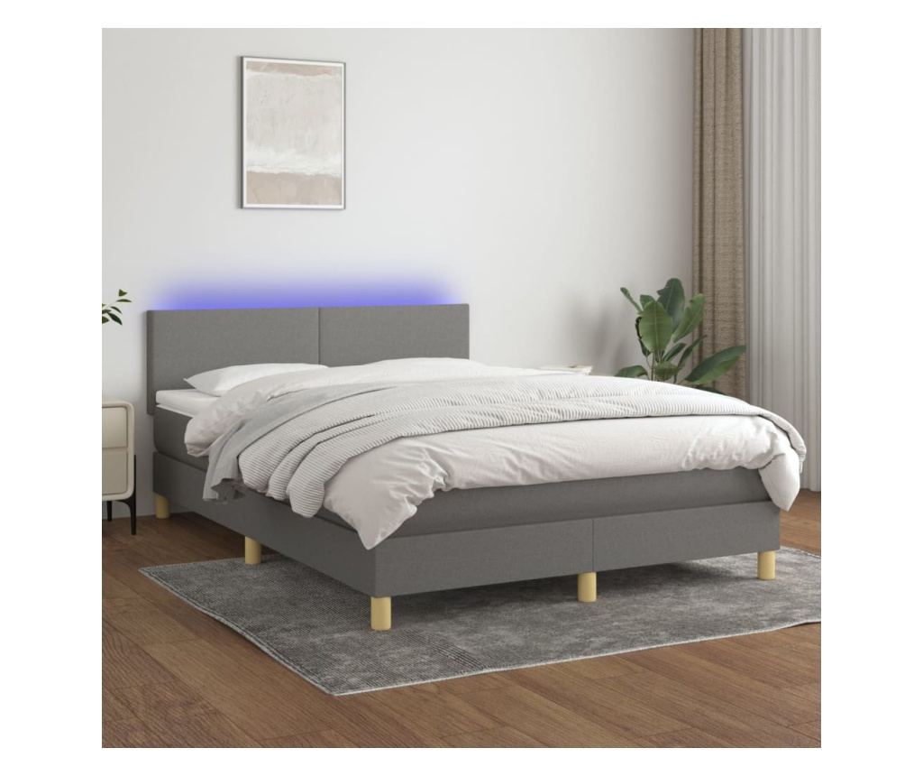 Рамка за легло с матрак и LED, тъмносив, 140x190 см, текстил