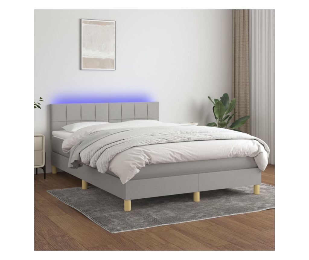 Пружинен спален комплект с матрак и LED, светлосив, 140x200 см, текстил