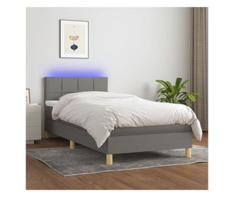 Пружинно легло с матрак и LED, тъмносиво, 100x200 см, текстил