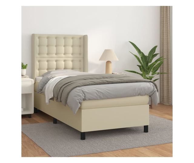 Боксспринг легло с матрак, кремаво, 100x200 см, изкуствена кожа