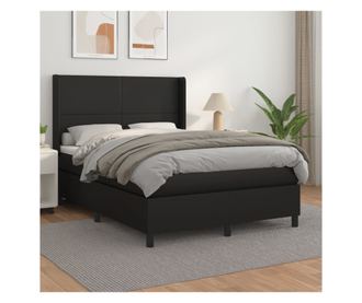 Боксспринг легло с матрак, черна, 140x200 см, изкуствена кожа