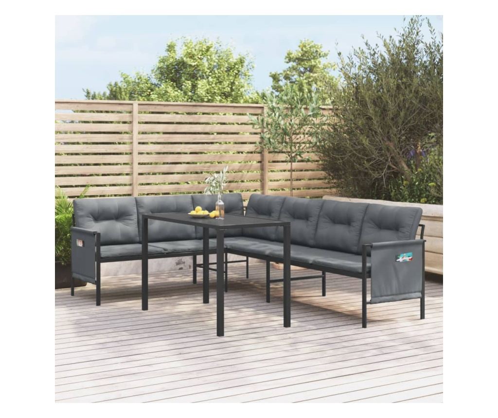 - Стабилна рамка: Прахово боядисаната и електрофорезно боядисана стоманена рамка гарантира, че този комплект мебели е здрав и стабилен.