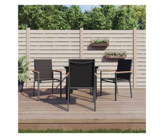Градински комплект мебели, 5 части, Черен, Текстилен и Стомана