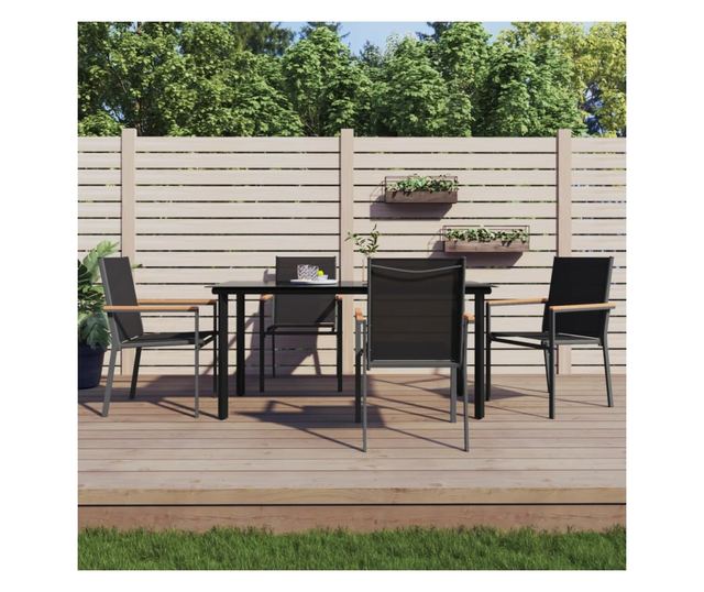 Градински комплект мебели, 5 части, Черен, Текстилен и Стоманен
