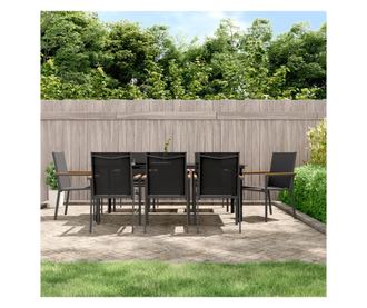 Градински комплект мебели, 9 части, Черен, Текстилен и Стомана