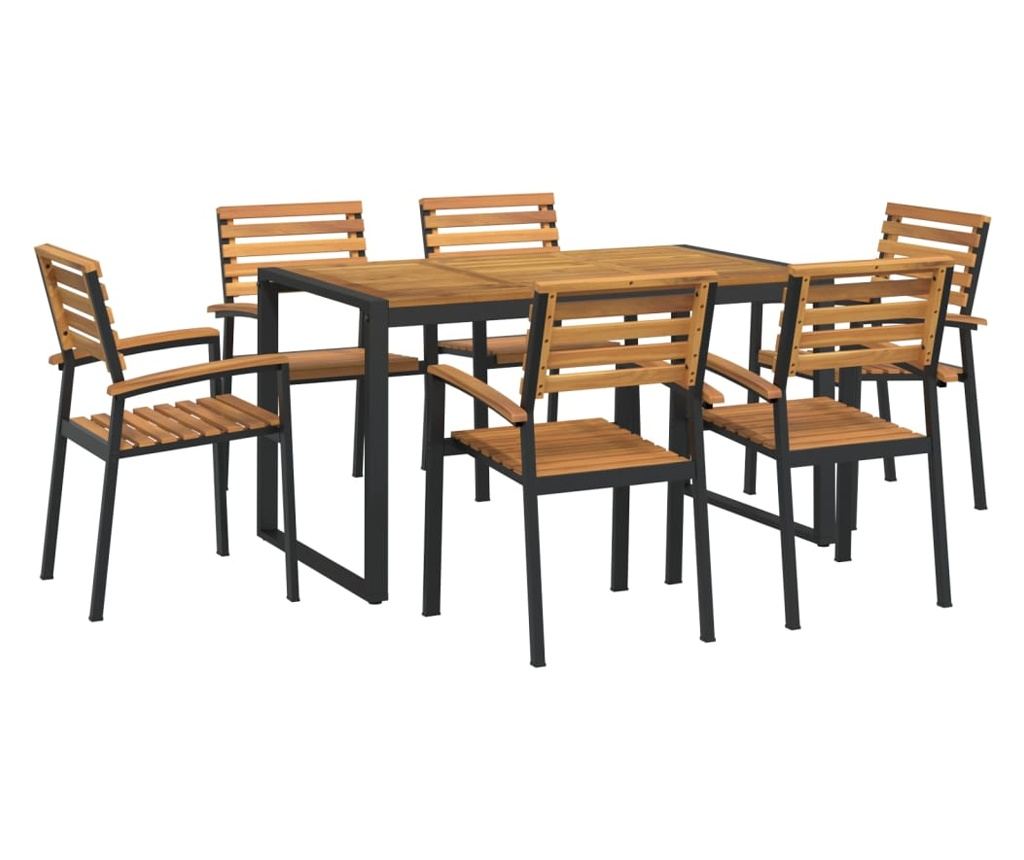 - Материал: Масивно акациево дърво с маслено покритие, прахово боядисан метал