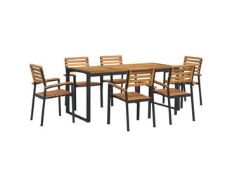 Градински комплект мебели, 7 части, масивна акациева дървесина и метал