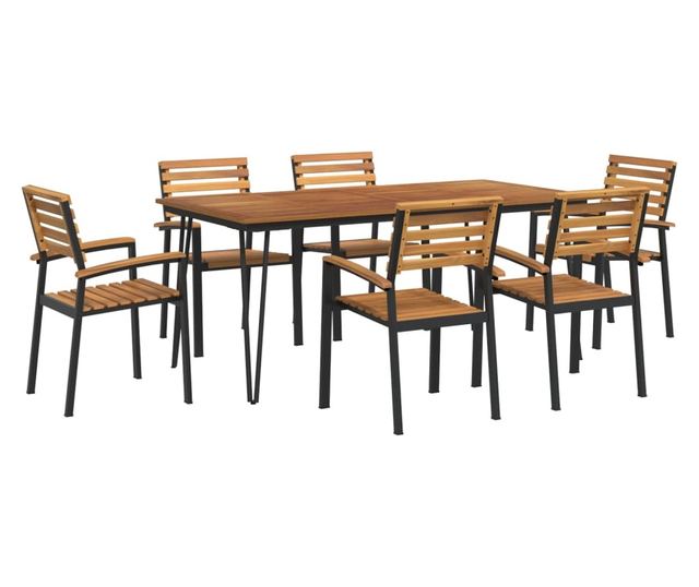 Градински комплект мебели, 7 части, масивно акациево дърво и метал