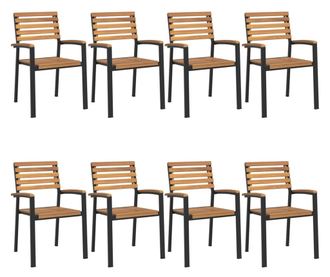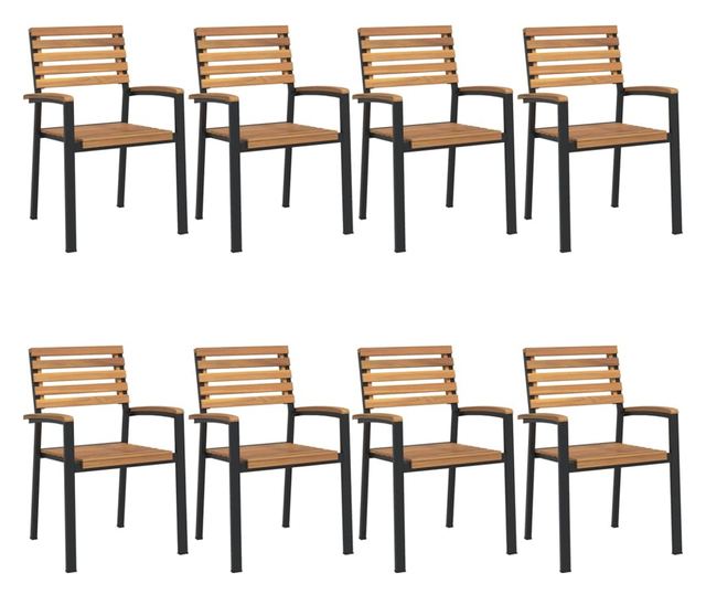 Градински столове за подреждане, 8 бр., Масивна акациева дървесина и метал