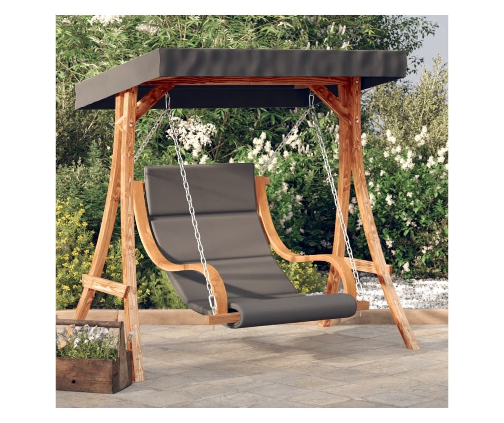 Този дървен люлеещ се стол с възглавница и сенник е идеалният избор, ако търсите релакс и забавление на открито.