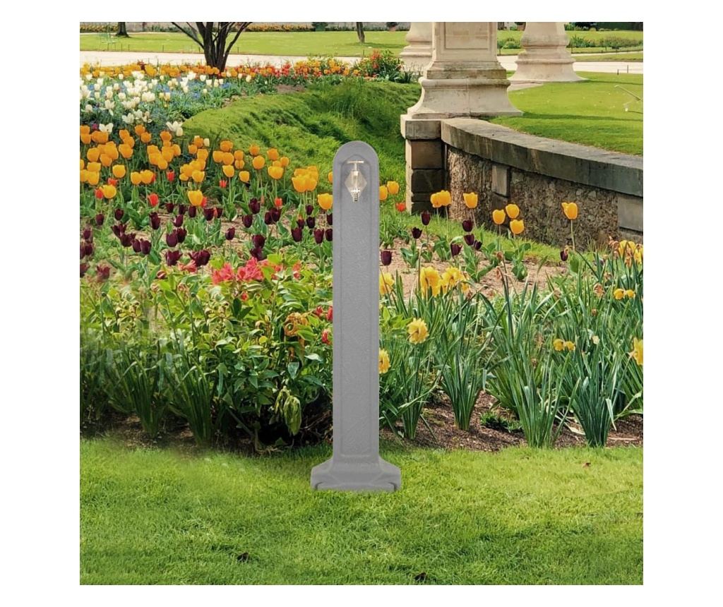 Градинският кран може да бъде закрепен към земята с винтове, много лесно (винтовете не са включени). Има долен конектор, към който можете да свържете маркучи за поливане на растения, цветя или за миене на колата в градината.