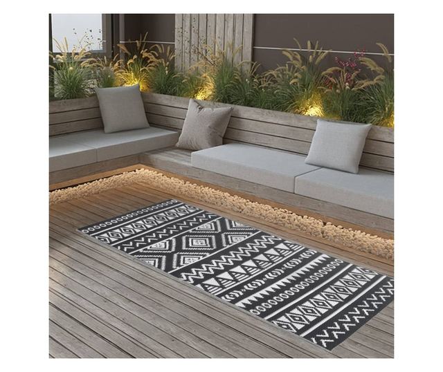 Външен килим, черен, 80x150 см, PP