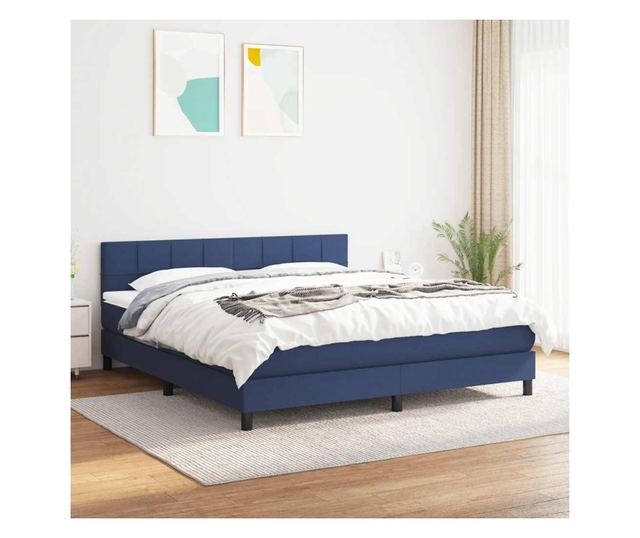 Боксспринг легло с матрак, синьо, 160x200 см, текстил