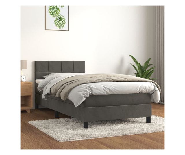 Боксспринг легло с матрак, тъмносиво, 90x190 см, кадифе