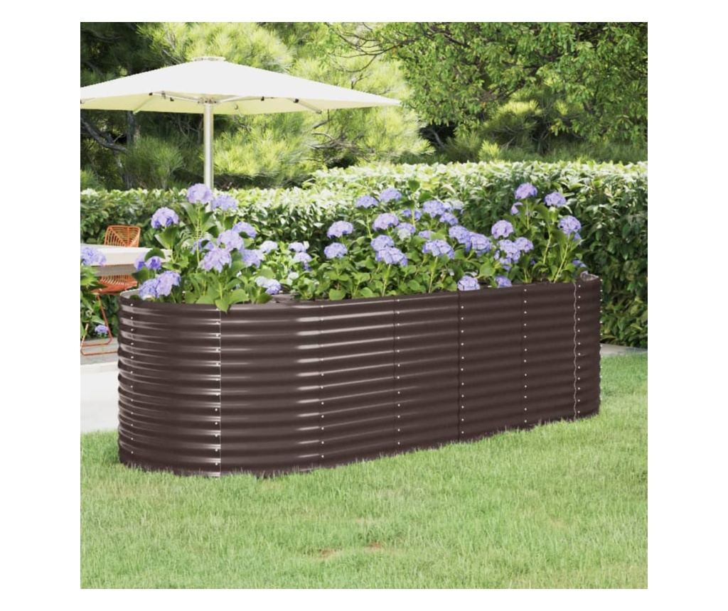 - Премиум материал: Саксията е с прахово покритие срещу ръжда и корозия. Следователно е устойчива на атмосферни влияния и много практична за употреба на открито.