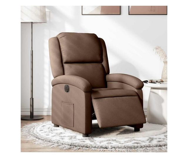 Електрически реклайнер фотьойл, кафяв, текстилна материя