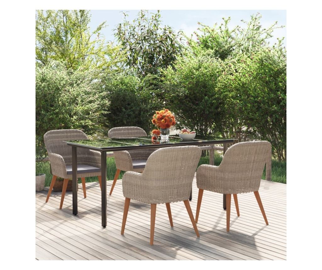 Този елегантен комплект градински трапезни мебели ще бъде фокусната точка на вашата градина или вътрешен двор! Той е отличен избор за хранене на открито или за релакс във вашето външно пространство!