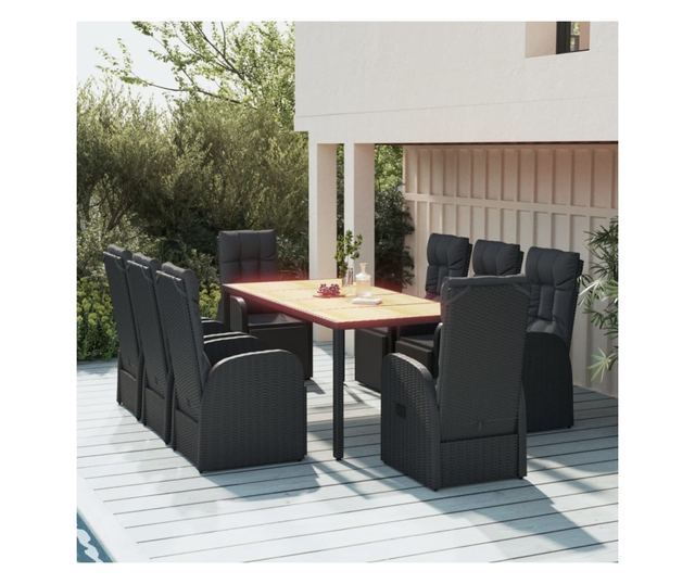 Комплект градински мебели от 9 части, полиратан/масивна дървесина акация