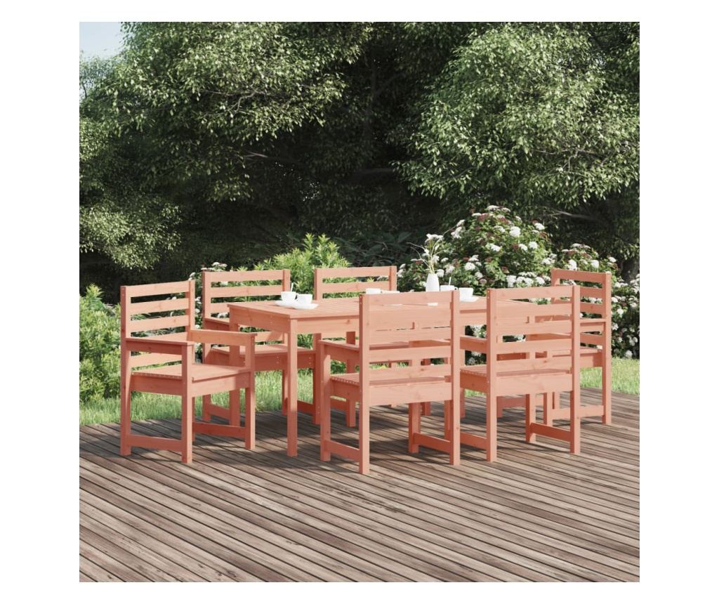 - Масивна дървесина Дуглас: Комплектът маса е изработен от масивна дървесина Дуглас. Масивната дървесина Дуглас е много издръжлива дървесина, идеална за употреба на открито. Дървесината Дуглас също е устойчива и изисква минимална поддръжка, дори под влиянието на атмосферните условия.