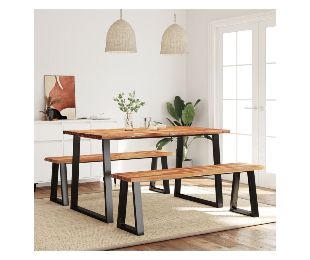 - Материал: Масивен акациев дървен материал с маслено покритие, прахово боядисана стомана