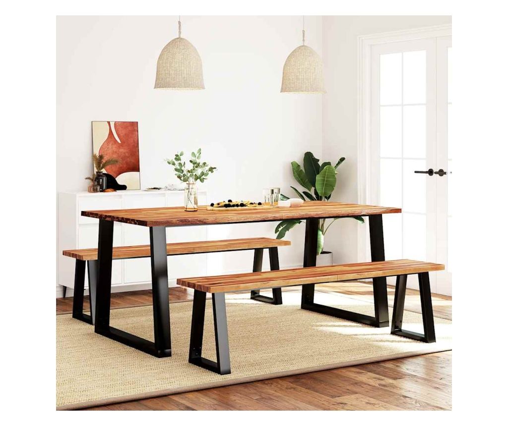 - Материал: Масивен акациев дървен материал с маслено покритие, прахово боядисана стомана