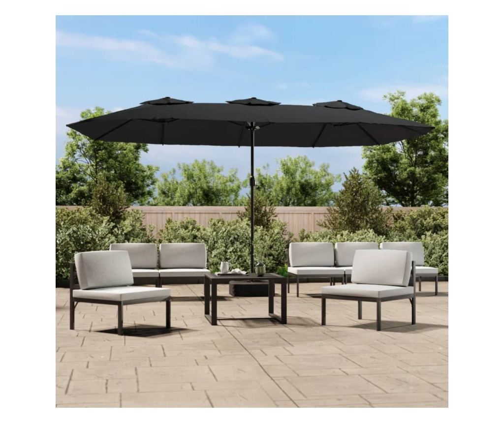 Този елегантен двоен чадър за двор е идеалният избор за създаване на засенчена зона и предпазване от вредните UV лъчи на слънцето.