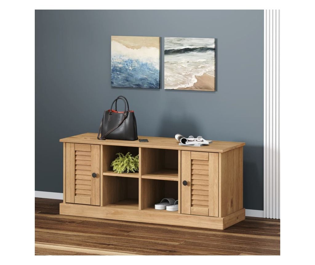 - Масивна борова дървесина: Масивната борова дървесина е красив естествен материал. Боровата дървесина има прави нишки, а възлите придават на материала уникален рустик вид. Изработена от масивна борова дървесина, този шкаф за съхранение на обувки е издръжлив и здрав.