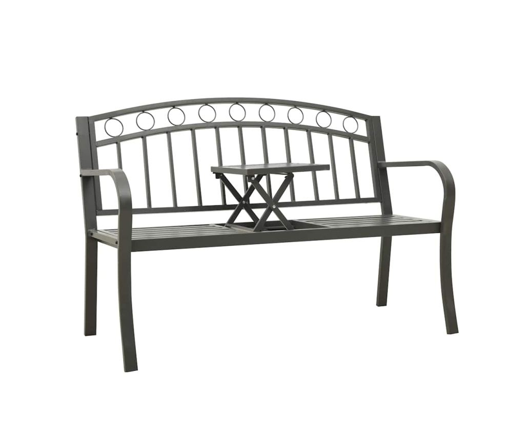 - Уникален дизайн: Масата, проектирана в центъра на външната пейка, ви позволява да държите закуски и напитки на леснодостъпно място.