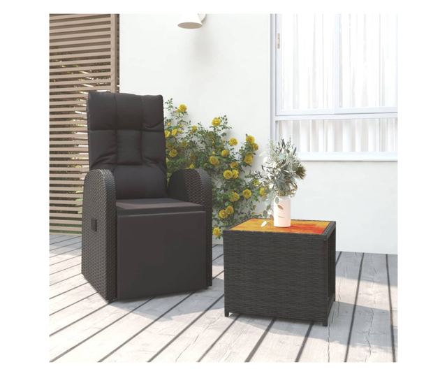 Комплект градински шезлонги, 2 броя, Черен, Полиратан и Акациево дърво