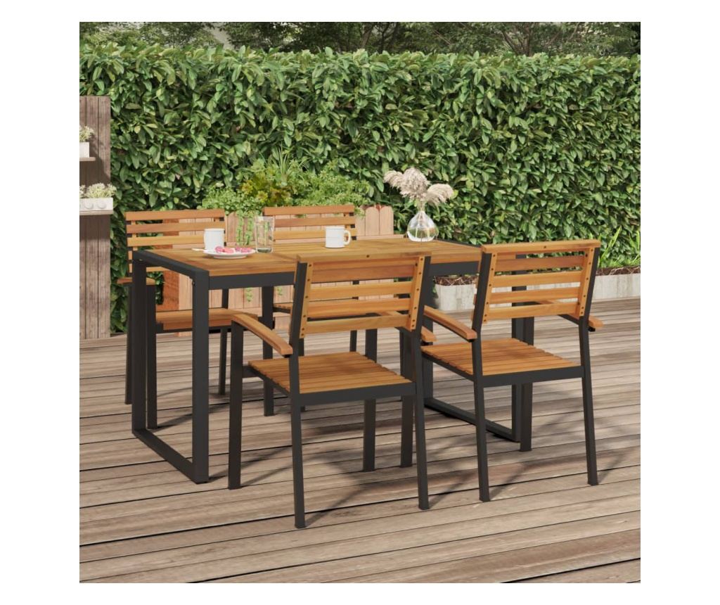 - Материал: Масивна акациева дървесина с маслено покритие, прахово боядисан метал