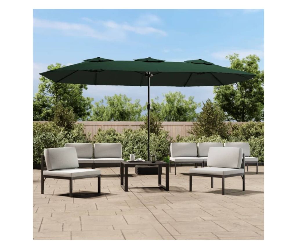 Този елегантен двоен чадър за двор с LED е идеалният избор за създаване на засенчена зона и предпазване от вредните UV лъчи на слънцето.