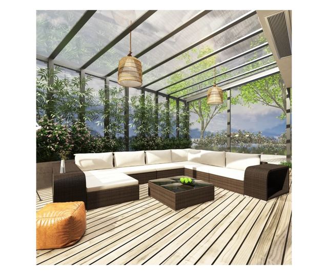 Създайте неустоима зона за отдих, за която винаги сте мечтали, с този комплект от 10 части за вътрешен двор. Можете да се насладите на релаксираща вечер, слънчев следобед или летен ден със семейството и приятелите си с този модулен комплект градински мебели за отдих!