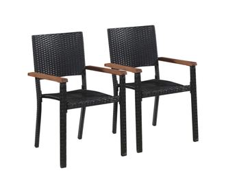 Градински столове, 2 бр., Черен, Полиратан