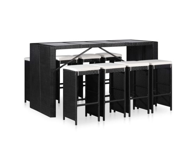 Този комплект градински мебели от полиратан, включващ 1 бар маса, 8 бар стола и 8 възглавници за сядане, ще бъде акцент във вашата градина.