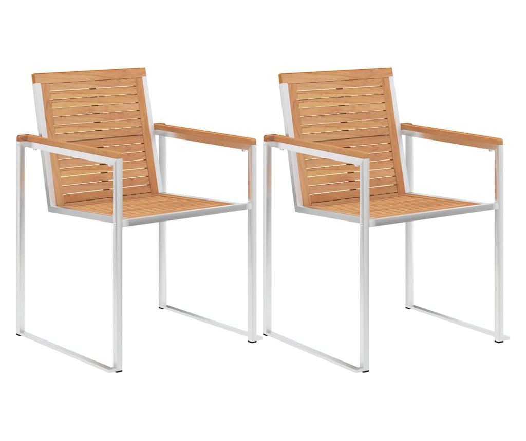 Столовете са изработени и от висококачествена неръждаема стомана 304, което ги прави устойчиви на ръжда, здрави и лесни за почистване с влажна кърпа. Седнете за прекрасна вечеря на открито или просто се насладете на красивото време с този комплект класически градински столове. Тези кухненски столове се сглобяват лесно.