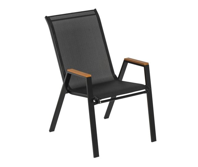 - Материал: Метална конструкция, дървени подлакътници, текстилен плат (textilene)