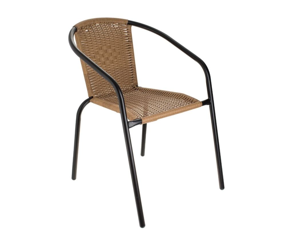 Стилен и практичен стол, подходящ за тераса, балкон или градина. Комбинира здрава метална конструкция с удобна пластмасова седалка и облегалка с елегантен плетен дизайн, който придава модерен и изискан вид на външното пространство.