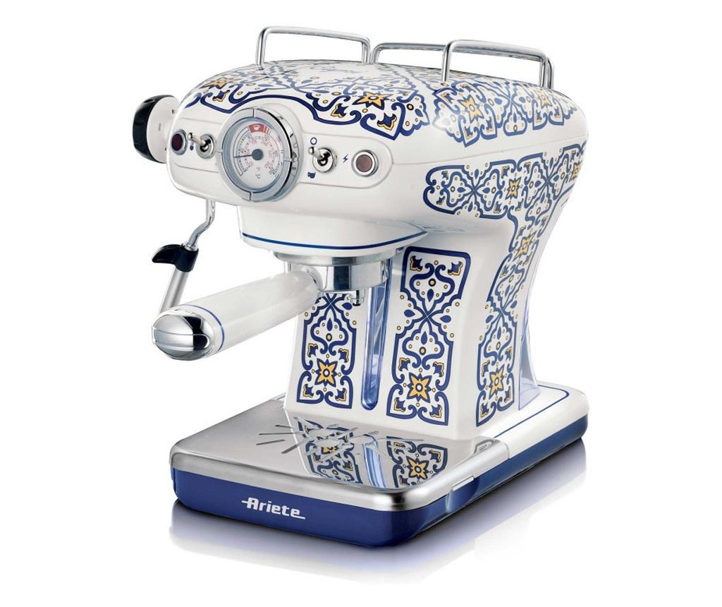 Кафемашина Ariete Capri 1389/1C, 850W, 15 bar, 0.9 л, Стиймър за мляко, Мляно и ESE дози, Бял/син