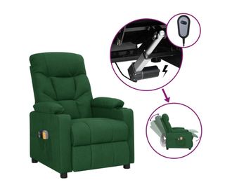 Електрически реклайнер масажен стол, тъмнозелен, плат