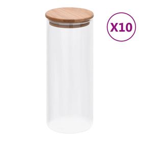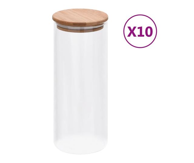 Стъклени буркани за съхранение, бамбуков капак, 10 бр. 1000 мл